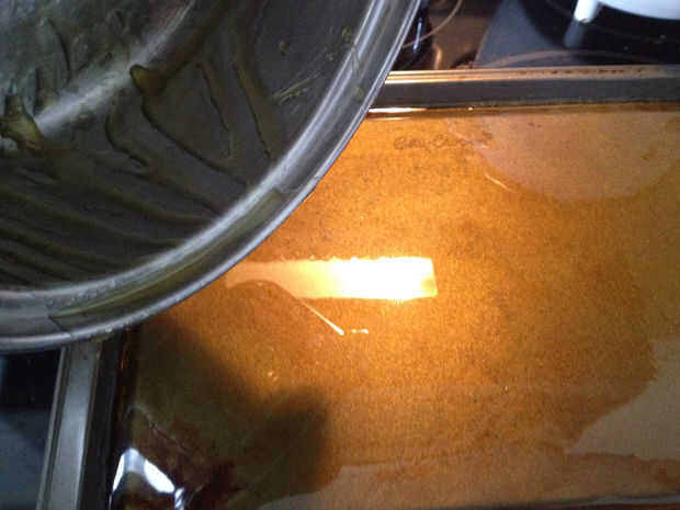 Verter en el azafate rectangular antiadherente y deje que endurezca a temperatura ambiente