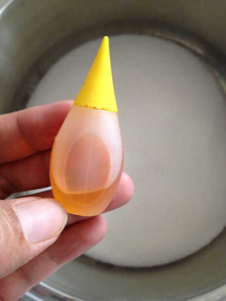 6 gotas de colorante amarillo, líquido (puede usar color de agar-agar, utilizar llanura aquí por lo que coloreado con colorante amarillo. Si usas llano así, puede color a cualquier color que desee)