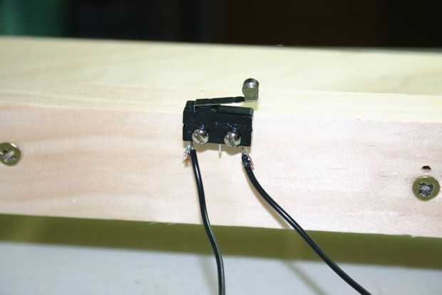 25 pulgadas de la parte inferior, coloque otra cruz junta.  En este tablero, Monte uno de los pulsadores de límite (en el centro).