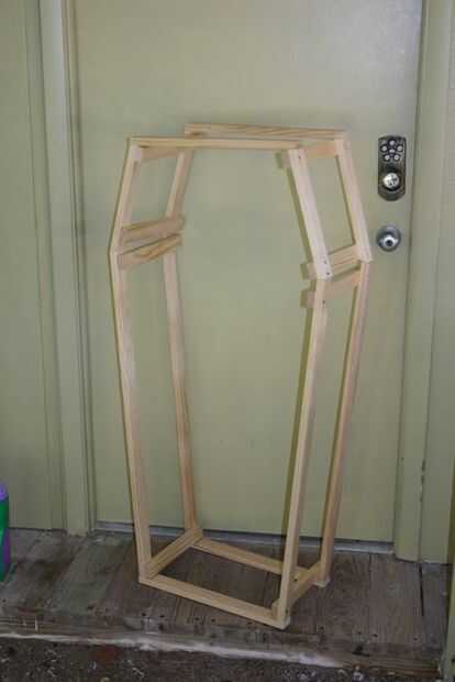 Por tanto mi hijo como muchos ahora, es en vampiros.  Recientemente consiguió un muñeco vampiro y quería un lugar para ella dormir.  Por lo tanto tuve que hacerle un pequeño ataúd.Lo hice fuera de cosas que tenía que poner alrededor de la casa.  Algu