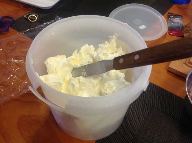 - Coloque el recipiente en el refrigerador durante 10 minutos o hasta que se necesite. Esto ayuda a solidificar el acortamiento. Antes de usar, retorna a la mezcladora y batir nuevamente durante 3 minutos aproximadamente ablandar y obtener una consistencia conveniente para separarse o tuberías.