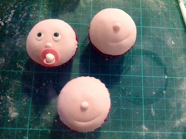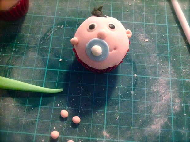 Hacer dos bolitas de fondant color carne y ligeramente pegarlos uno a la vez a los lados del cabeza fuera muy amplio cerca de la orilla. Utilice una herramienta puntiaguda para Pulse en ella y meter un extremo dentro de la cabeza. (ver imagen 5)