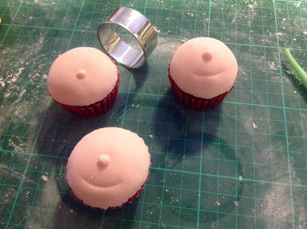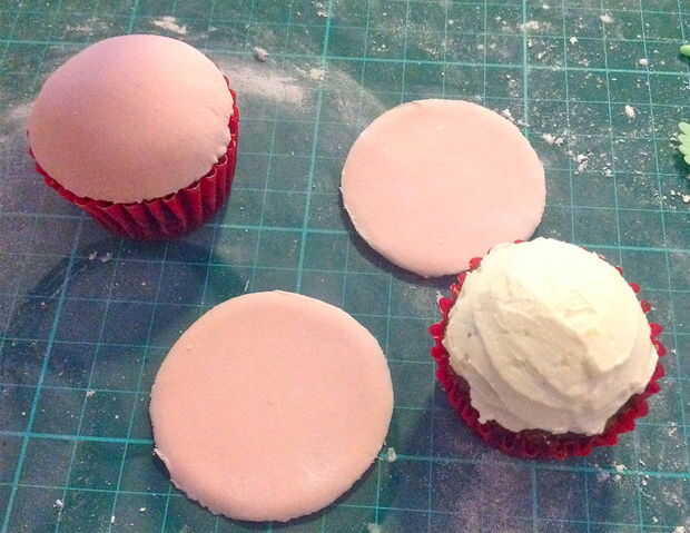 Amase y extienda su carne tonificada (fondant) a aproximadamente 1/8 pulgadas grueso y corte en redondos ligeramente más grande que sus magdalenas. Como regla general, si puede caber la Magdalena a través de la cuchilla con un poco de meneo de habitación, el cortador debe ser fino usar. Recuerde que Fondant es elástico y podrás aliviar al borde de sus magdalenas si usted encuentra que ellos también son cúpulas y no parece encajar. He utilizado una Huevera de hacer rondas para cupcakes miniatura