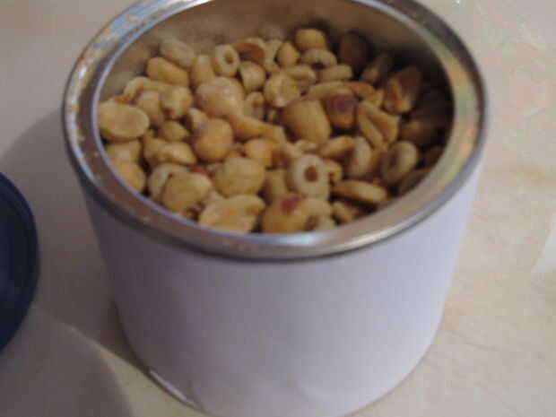 Tiene una hoja de papel pergamino o plástico listo y dejar de lado. Vierta el cereal en la lata de frutos secos. Cierre la tapa y agite bien. Conjunto puede a un lado.