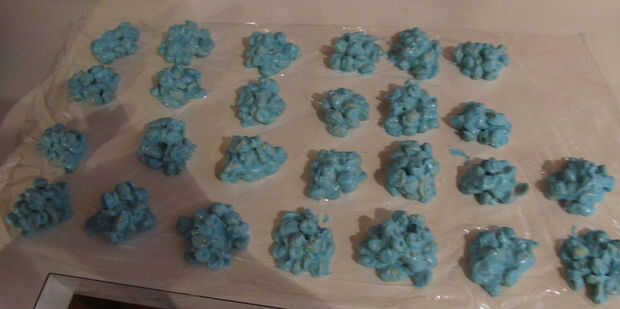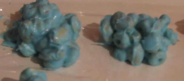 Esperar 10-15 minutos o hasta que los grupos pierde su brillo. Para aquellos con menos paciencia, colocar los racimos en el congelador durante 5 minutos. Disfrutar de