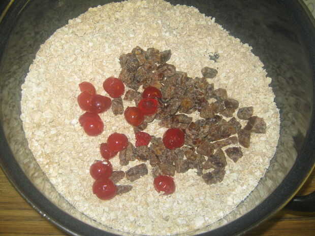 Picar las fechas y las cerezas en trozos pequeños, como te gustaría.
