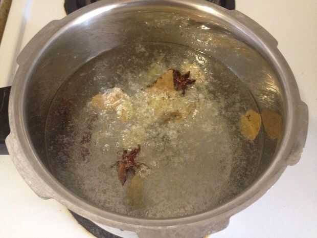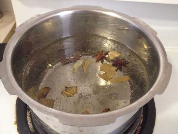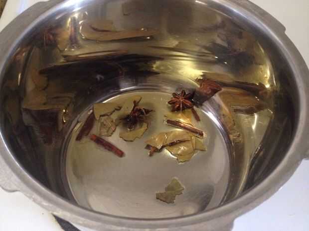 1. calentar el ghee en un recipiente grande a fuego medio, agregar todo garam masala en él.