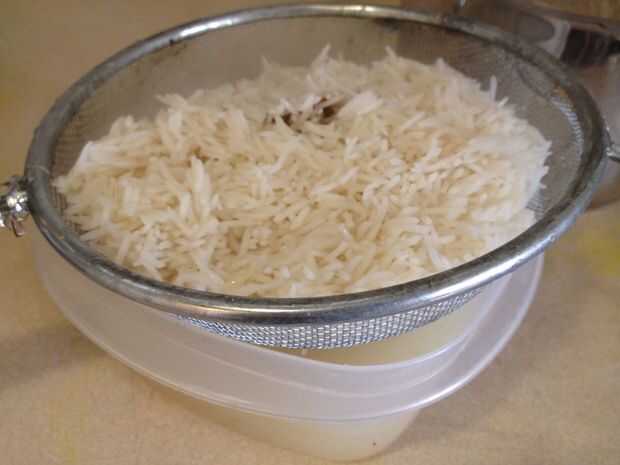 5. Drene el agua con el colador del filtro y mantener el arroz a un lado.