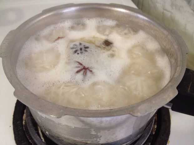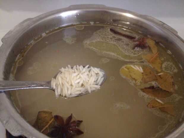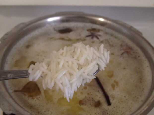 3. una vez que comience a hervir, añada el arroz basmathi.