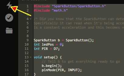 SparkButton b = SparkButton(); int ledPos = 0; int PIR = D7;