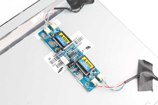 Una vez que esté enchufada, asegurar la placa en la parte posterior de la luz de fondo con cinta de doble cara.