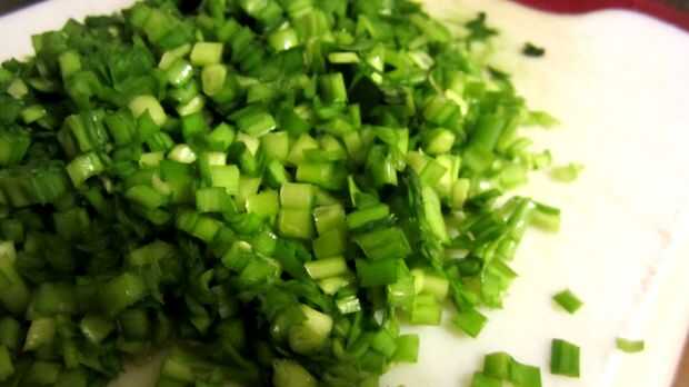 • Bien dice arriba el cebollino chino! Una meta sería córtelos finamente con los primeros cortes, porque no quieres volver atrás y volver a cortar. La idea es no a contusión de la planta. Coloque en el tazón de fuente y sal adecuadamente también.