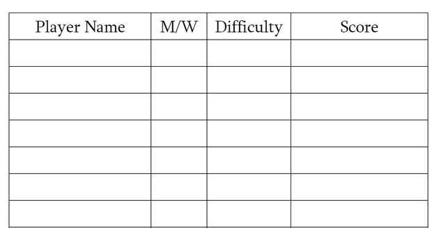 tipo, la dificultad del juego y su resultado final. Una práctica hoja de puntuaciones,