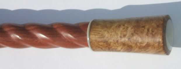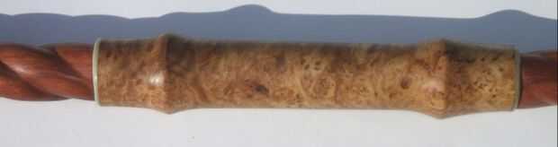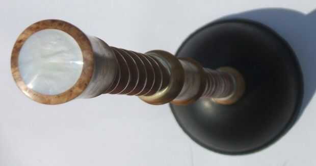 En el medio, las 2 partes de la ranura de mango de la Jarra en cobre tubo y toquen en el centro, con la madera del burl de coolibah sobre la parte superior, también tiene madre de perla arandelas entre todos de la une, en la parte inferior la jarra también de todo lo largo y tiene el hilo plástico original que atornilla en el émbolo de goma