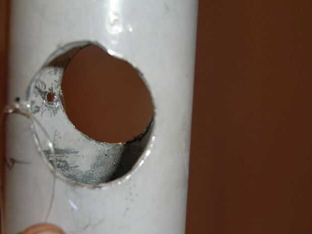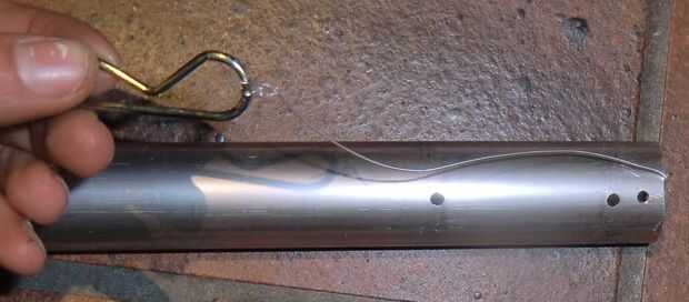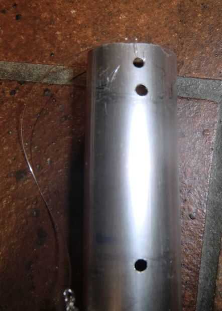 -También Perfore un orificio con diámetro 10 mm todo el camino, en el centro del tubo (565 mm)