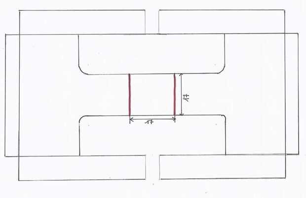-corte en el centro de la parte una brecha de 5 cm y también la otra parte del interior es cartucho (Adviértase: alojarte 1, 5 cm de lado)