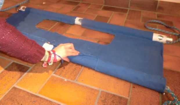 -Deslice los tubos pequeños a través de los orificios de los tubos grandes y colocar el paño