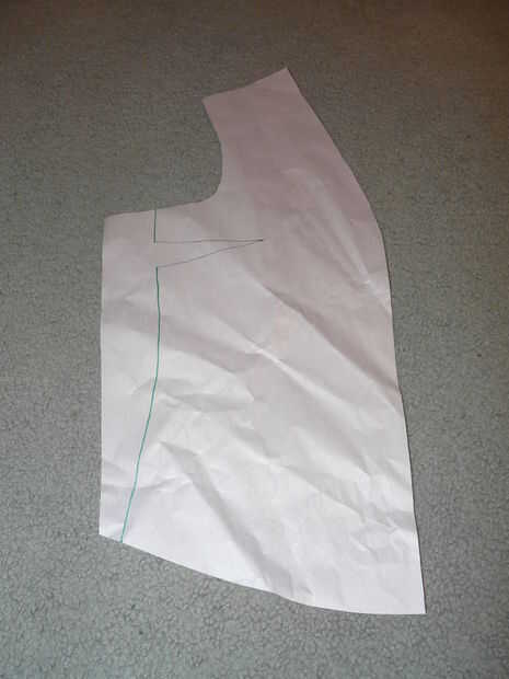 Deja el pin en el punto del dardo justo donde está. Suelte los pernos más bajos, hasta que son capaces de suavizar la tela sobre el dardo. Ahora, se arruga la tela debajo del dart, pero que está bien. Otra vez traza la tela que han anclado a la superficie acolchada, incluida la línea de costura del dardo. Si es necesario, quite los pasadores más bajo otra vez para suavizar y trazar el resto de la tela. Retire la ropa del papel cuando esté listo.