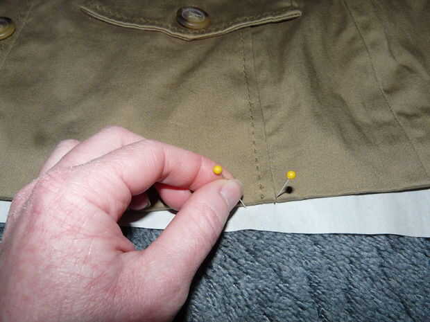 También utilice el pin para marcar cualquier botón o cavidades que se encuentran en la pieza que se seguimiento. Empujar el pasador derecha a través de los orificios en el botón y a lo largo de las puntadas en el bolsillo. Los ojales pueden establecerse simplemente a través de con una pluma.