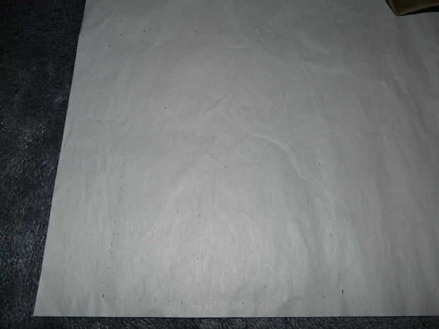 Cuando usted ha marcado toda la pieza, sacar los pernos que están anclando la prenda a la superficie acolchada. Verás que han duplicado el pedazo del patrón en el papel, por perforar el papel con el pasador.