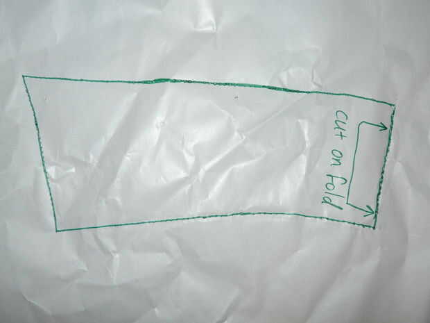 Asegúrese de hacer una nota sobre el patrón de papel que el borde donde estaba el centro, es una línea de pliegue. No añada un margen para este borde. Usted tendrá que colocar ese lado del patrón de papel sobre un pedazo doblado de la tela, cuando usted finalmente cortar su patrón de tela. Esto te dará un collar entero, en lugar de la mitad de un collar!