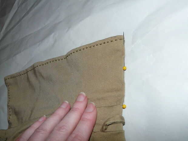 Algunas de las piezas de ropa será simétrica, lo que significa que son los mismos a la izquierda y la derecha. Un yugo trasero, por ejemplo, sería simétrico, o un collar. Piezas como esta, usted debe doblar por la mitad y marcar el doblez del centro con una línea de pins. Ahora sólo necesita trazar la mitad de la pieza, tratamiento de la línea de pines como un borde.