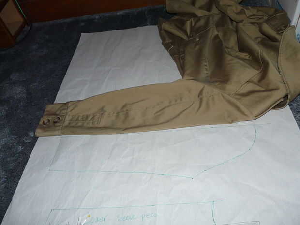 Los manguitos son difíciles ya que se relajan en la parte superior, lo que significa que inicialmente se corta la pieza de tela sea mayor de lo que parece como un manga acabado. Se cortan como para dar al usuario más libertad de movimiento, pero hace mangas más difícil rastrear porque si trazar y cortar el manguito como lo es ahora, terminará demasiado pequeño.
