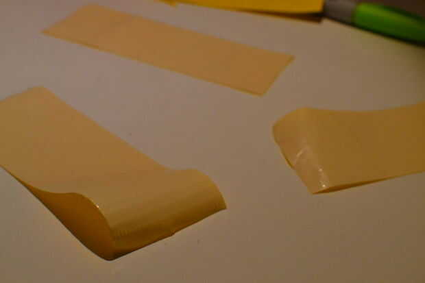 Cortar tres 5" trozos de cinta. Tomar dos y poner uno encima de otro. Deje la mitad de cada tira expuesta. Toma la última pieza de la cinta y cubre el lado adhesivo de la cinta que quede mirando hacia arriba. La mitad de la tira de tercer/último debe estar en la mesa. Voltee el arreglo de la cinta. Debe tener una cinta de la tira hacia abajo en la parte superior dos tiras hacia arriba a ambos lados de la misma. Foco en una de las cintas tiras con el lado pegajoso arriba Doble estilo de perrito caliente para que su borde esté tocando el borde de la cinta no adhesiva. Debe ser doblado en sí mismo estilo perrito caliente. Ahora sólo una tira debe tener partes adhesivas expuestas. Recortar el arreglo hasta 4". Ponga el arreglo en la carpeta. Cinta por todos los bordes sin garantía excepto los que son más largas que la anchura de un bolsillo con 1/4 tiras de cinta. Hacer otro bolsillo y colocarlo sobre el arreglo de la cinta. Doblar la parte que no está grabada en el bolsillo y lo pliegue. Han creado un bolsillo de la moneda! Puede colocar un cierre, pero Recuerde que si agrega un corchete, no use un imán porque mete a tarjetas de crédito.