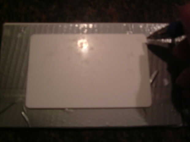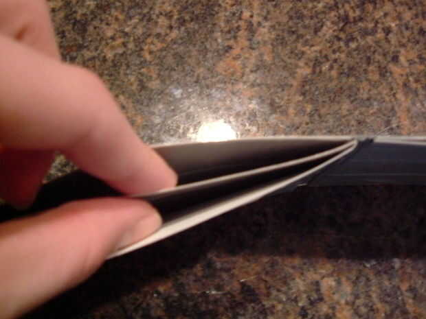 Utilice "el método de la doble de bill" para crear un segundo pliegue de bill en el lado izquierdo. Luego, coloque la tarjeta hacia abajo como en la foto 2 y trazar los dos lados más cortos con una pluma de tinta. Luego, cortar el área que remonta, como en imagen 3. Ahora, toma una tira de cinta transparente y cinta dentro del bolsillo para que el lado pegajoso y frente a la cinta cubre el interior marco de la forma de "U" a la izquierda de la abertura (pondría cuadros para este pedacito, pero usted no sería capaz de ver la cinta del embalaje de todos modos). Luego con una tira del mismo tamaño (cinta todavía clara), el lado pegajoso hacia abajo, alinee las dos tiras para formar una ventana transparente, no pegajoso, a través del cual es visible su tarjeta.