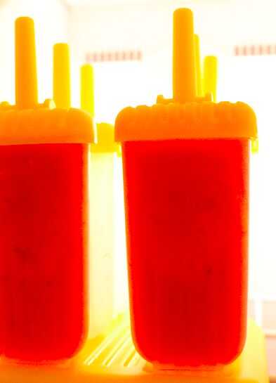 Esta paleta es saludable y un golpe con los niños. El dulce sabor de los melocotones se complementa perfectamente con el picante del jengibre. Si usted tiene un resfriado o gripe, asegúrese de preparar un lote de estas paletas porque son una forma de