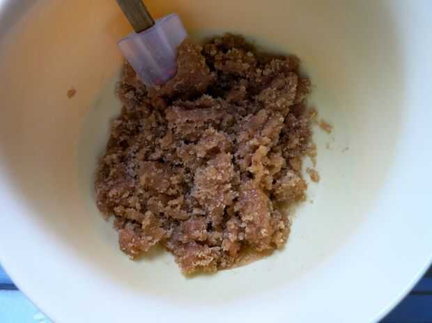 Mezclar el azúcar, la canela y la miel hasta combinar. La canela es opcional, me encanta el sabor de canela con melocotón.