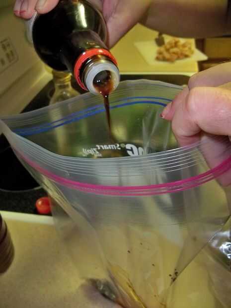 Mezcle 2 cucharadas de salsa de soja y 1 cda miel en una bolsa de plástico lo suficientemente grande para acomodar el pollo, mezclar la soja y miel juntos y luego echar el pollo en esta capa, que la cubre completamente y deje que permanezca unos 15 minutos o mientras se monta la salsa.