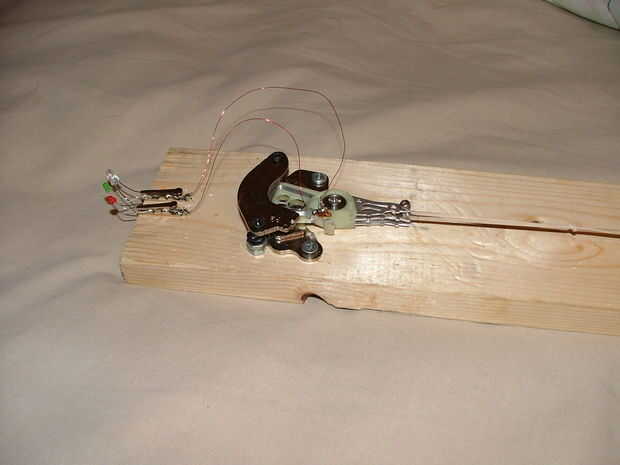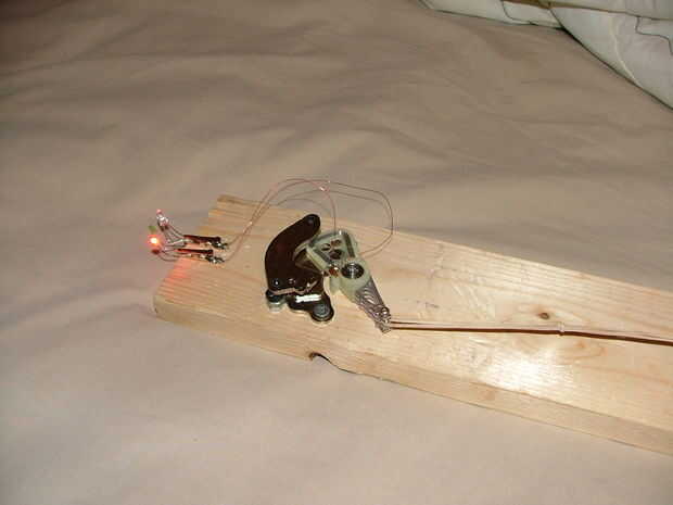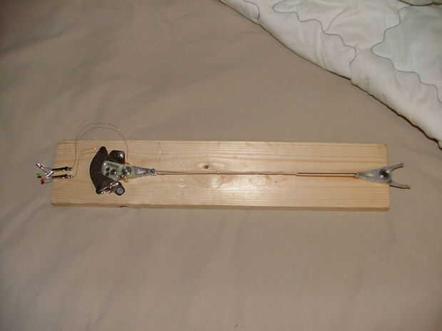 Estas son las fotos finales. Las fotos que tomé no fueron muy buenas mientras yo estaba la construcción de este, pero está construido igual que los otros generadores de este tipo en Uno de los extremos está construido en un pedazo de madera. Me dieron las piezas de la unidad de disco duro por un hombre muy agradable de un almacén de equipo local cerca de mi casa. He probado varias combinaciones de goma diferentes para conectar los dos brazos. He utilizado tres.