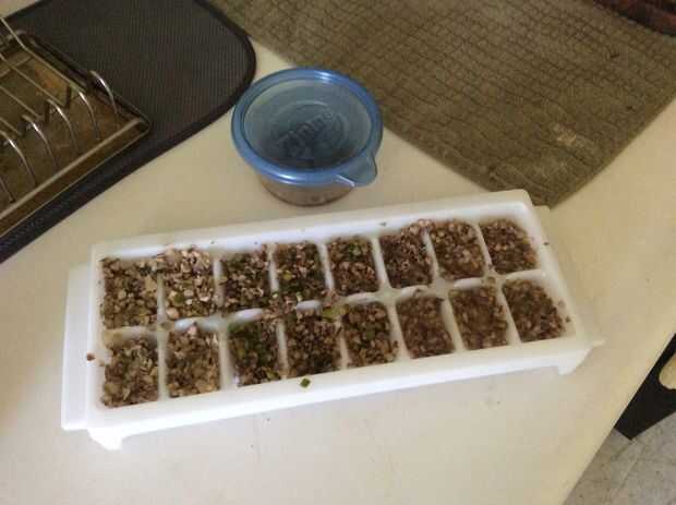 Disculpa: no pienso hacer el instructable hasta que terminé los dos primeros lotes, por lo que tengo no hay fotos con el cubito de hielo vacía. Los seis primeros en la bandeja se realizaron llano, la segunda seis ajos tiernos en lugar de rampas...
