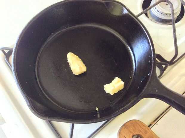 Poner aproximadamente dos cucharadas de mantequilla en la sartén lista para fundir.