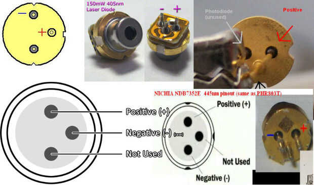 Una vez que un asimiento de él, puede parecer un cuadro 1,2,3, hay gran cantidad de diodos y de conexiones, así que ten cuidado cuando se mira en el internet para láser diodo PIN, porque pensé que todos compartieron el mismo pinout y entonces descubrí que no, como en el cuadro 4. Pero en ese momento ya había quemado como 5. Al final encontré un diodo como la de la última foto que funcionaba bien.