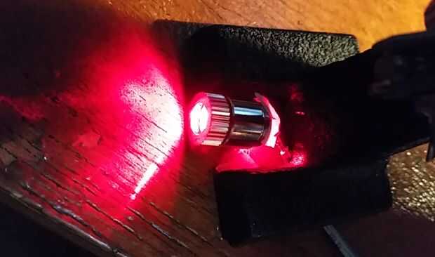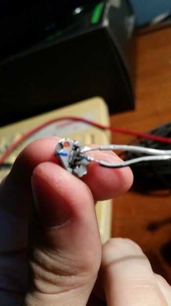 No tengo foto pero tengo un láser barato que tenía un módulo similar al "módulo Aixiz" que es tan popular y desmontarlo y pone mi diodo con mis cables en él. Antes de cerrar el módulo, asegúrese de un nudo en los cables, así que si alguien tira de los cables de la cepa se hace el nudo y no el soldador.