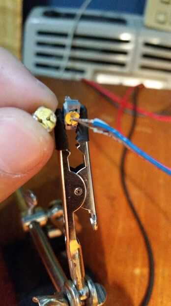 Ahora, cuando tenga los pines correctos, algunos cables de colores que se les de la soldadura, aislar con algún tubo que encoge o cinta y luego si estás totalmente seguro poner una gota de pegamento caliente o algo que añadir un poco de dureza.
