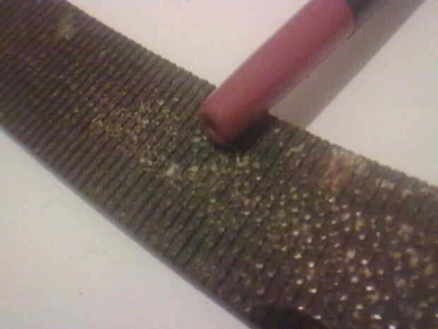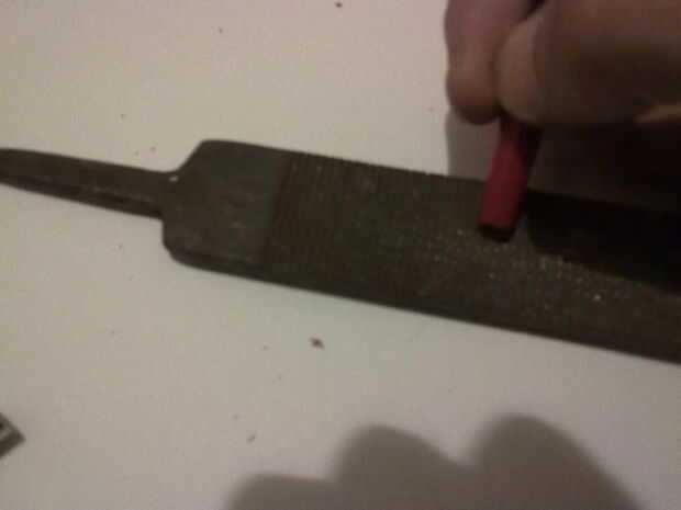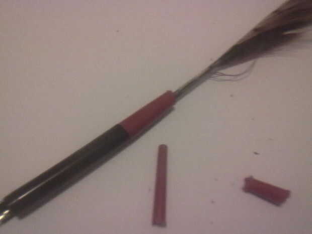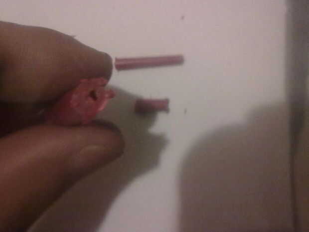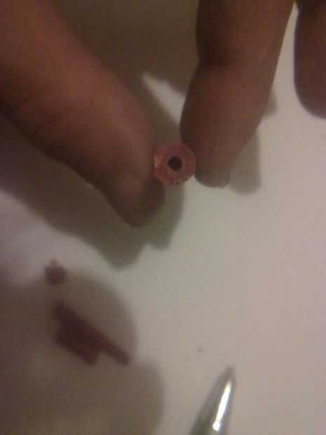 Corte pieza por pieza desde el extremo, hasta que veas un agujero, luego tome una pluma y limpia un poco...