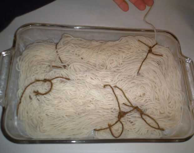 PASO 5 -Volcar soultion -Anillo hacia fuera de hilo hasta que se siente casi seco, asegurándose de que no se tuerza o se enreda todo