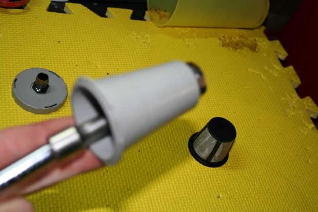 Sostenga la copa en su parte y la película la tuerca en sobre el eje del accesorio y vuelta en a mano. espera ahora la brida del depósito final y ajustado con un tornillo o una llave de apriete la tuerca con la llave pero use buen juicio aquí