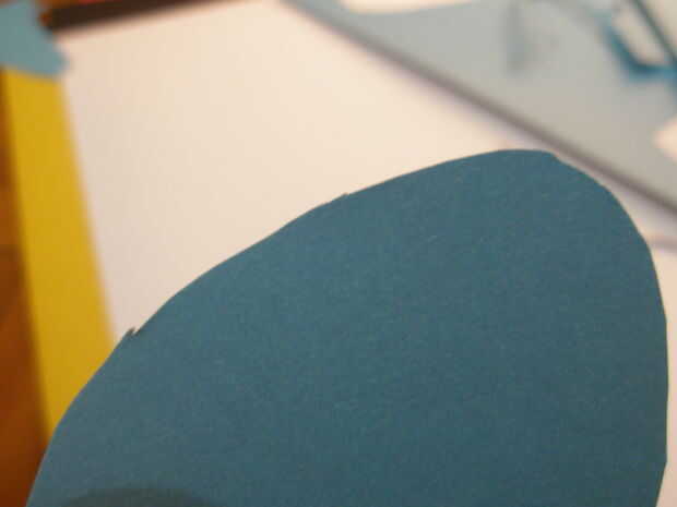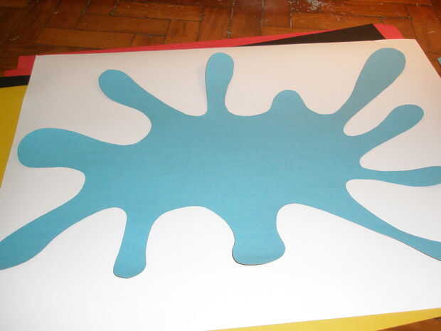 Así que, básicamente, queremos huellas redondas en un papel azul para parecerse a agua. También puede usar verde para parecerse a algo baboso.
