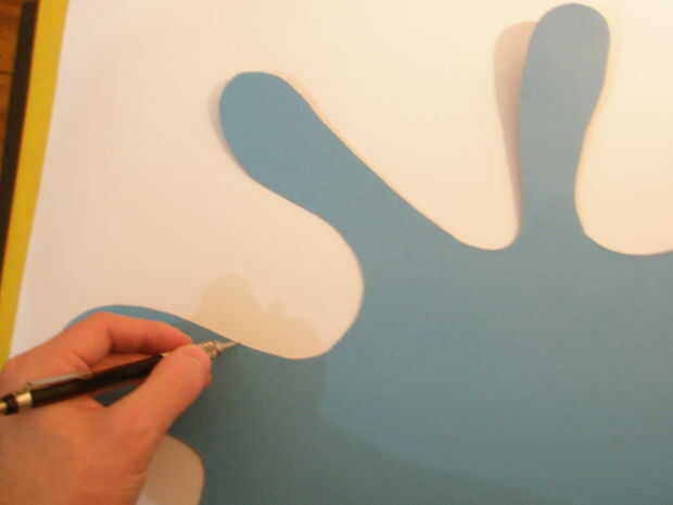 Primero poner el globo sobre el papel blanco para copiar el esquema, ayuda a utilizar cinta adhesiva para mantenerlo en su lugar.