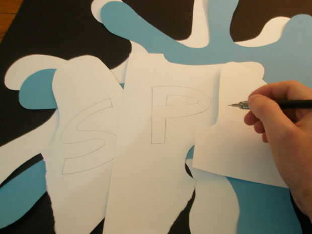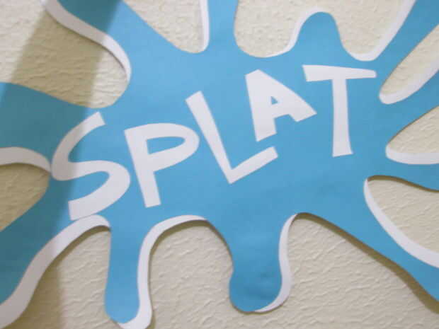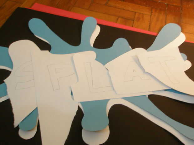 Obtener las sobras de papel blanco y escriba "Splat" con letras torcidas, es interesante realizar una fuente delgada para este, pero se puede mezclar con los más gruesos, como la "A" en el cuadro 8.