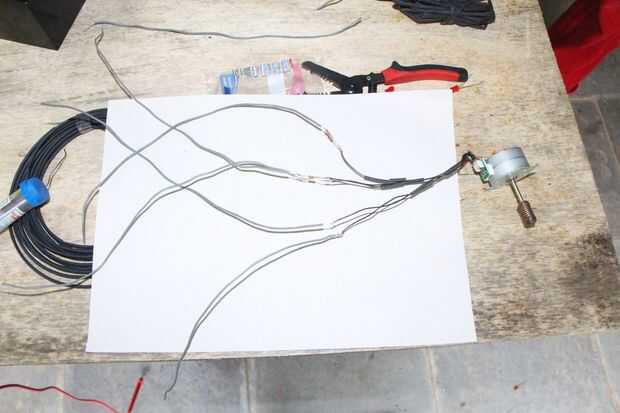 Había soldado las resistencias cerca del motor. El resto del circuito estaba soldado y escondido entre los bloques de madera.