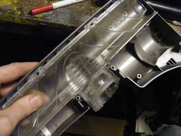 una vez desmontada vas a tener algo como esto. Aviso donde se superpone el plástico, no desea llenar en estos puntos.