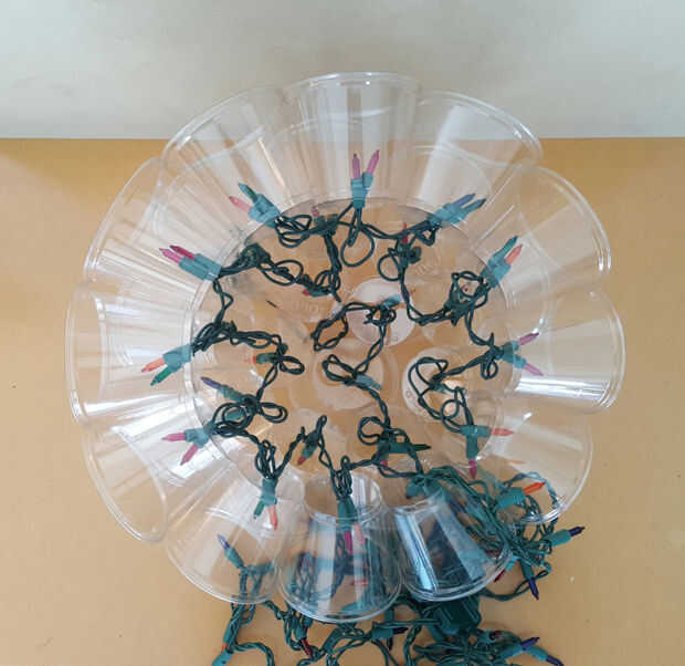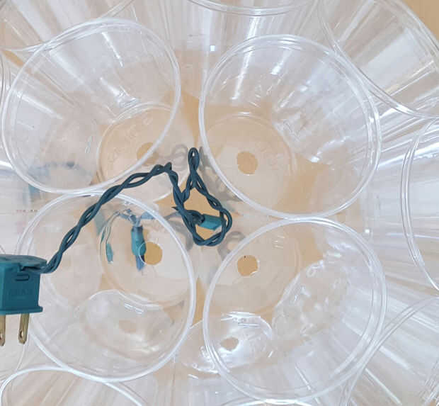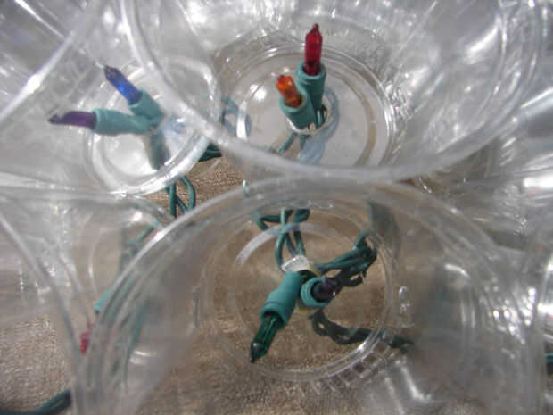 Sparkleball colorido perfecto para Bacanal de proyecto o de la primavera de Pascua. También proyecto perfecto para los niños. Te holepunch y taladro. Ellos Únete tazas y añadir luces.Paso 1: Lo que usted necesita 50 suave 9 tazas de oz vaso estilo ("