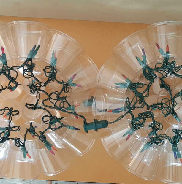 Sparkleball colorido perfecto para Bacanal de proyecto o de la primavera de Pascua. También proyecto perfecto para los niños. Te holepunch y taladro. Ellos Únete tazas y añadir luces.Paso 1: Lo que usted necesita 50 suave 9 tazas de oz vaso estilo ("
