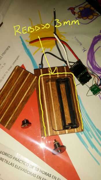 Yo lo hice fue medir la batería y la botella tanto ancho como largo, luego con la medida, me hice una plantilla de DM de 16mm y con la fresadora con un casquillo copiador le hice el hueco poco a poco. Luego medi el chip e hice lo mismo.