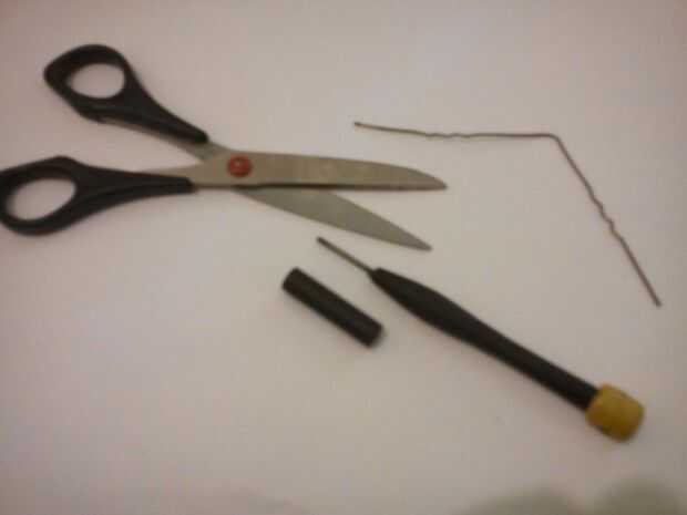 Cosas puntiagudas afiladas - utilicé un mini flathead destornillador y un par de tijeras, pero cualquier afilados, puntiagudo lo debería funcionar (el plástico es blando y fácilmente cortado)